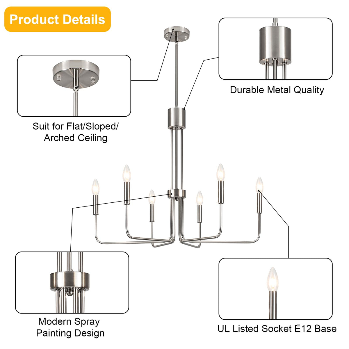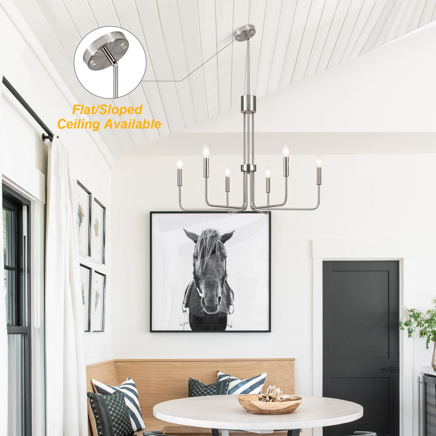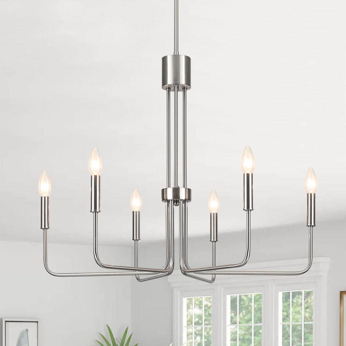 Zjvaive Dining Room Chandeliers 6-Light Brushed Nickel Chandeliers Modern Farmhouse Hang Light Fixture For Kitchen Living Room E