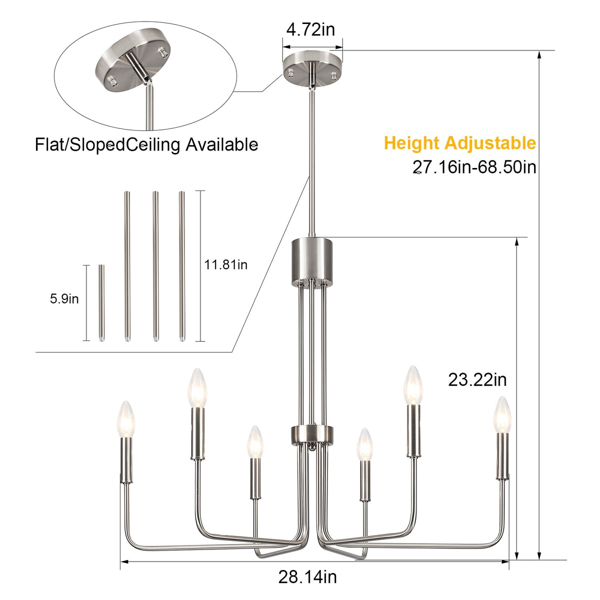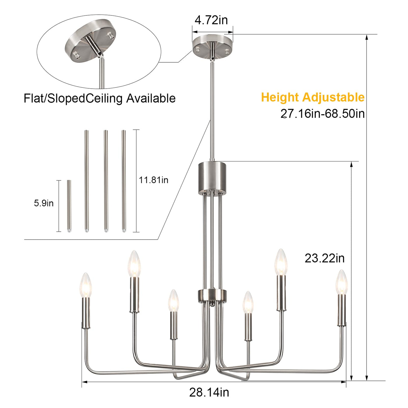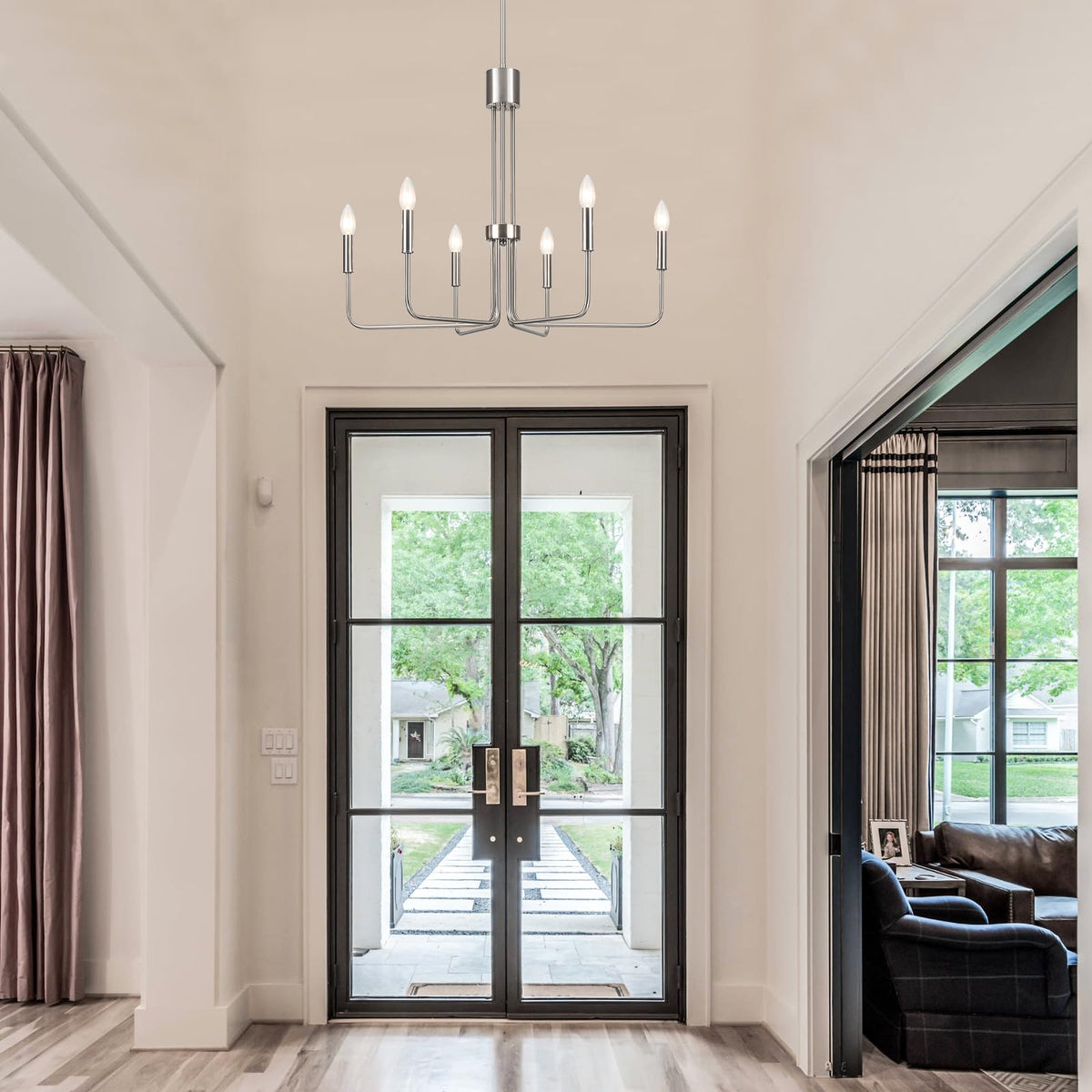Zjvaive Dining Room Chandeliers 6-Light Brushed Nickel Chandeliers Modern Farmhouse Hang Light Fixture For Kitchen Living Room E