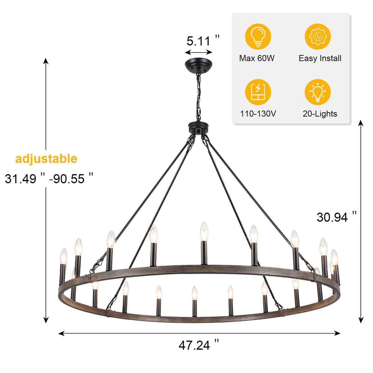 Zjvaive Wagon Wheel Chandelier 20-Light 48'' Round Rustic Farmhouse Chandelier Light Fixture For High Ceiling Foyer Hallway Livi