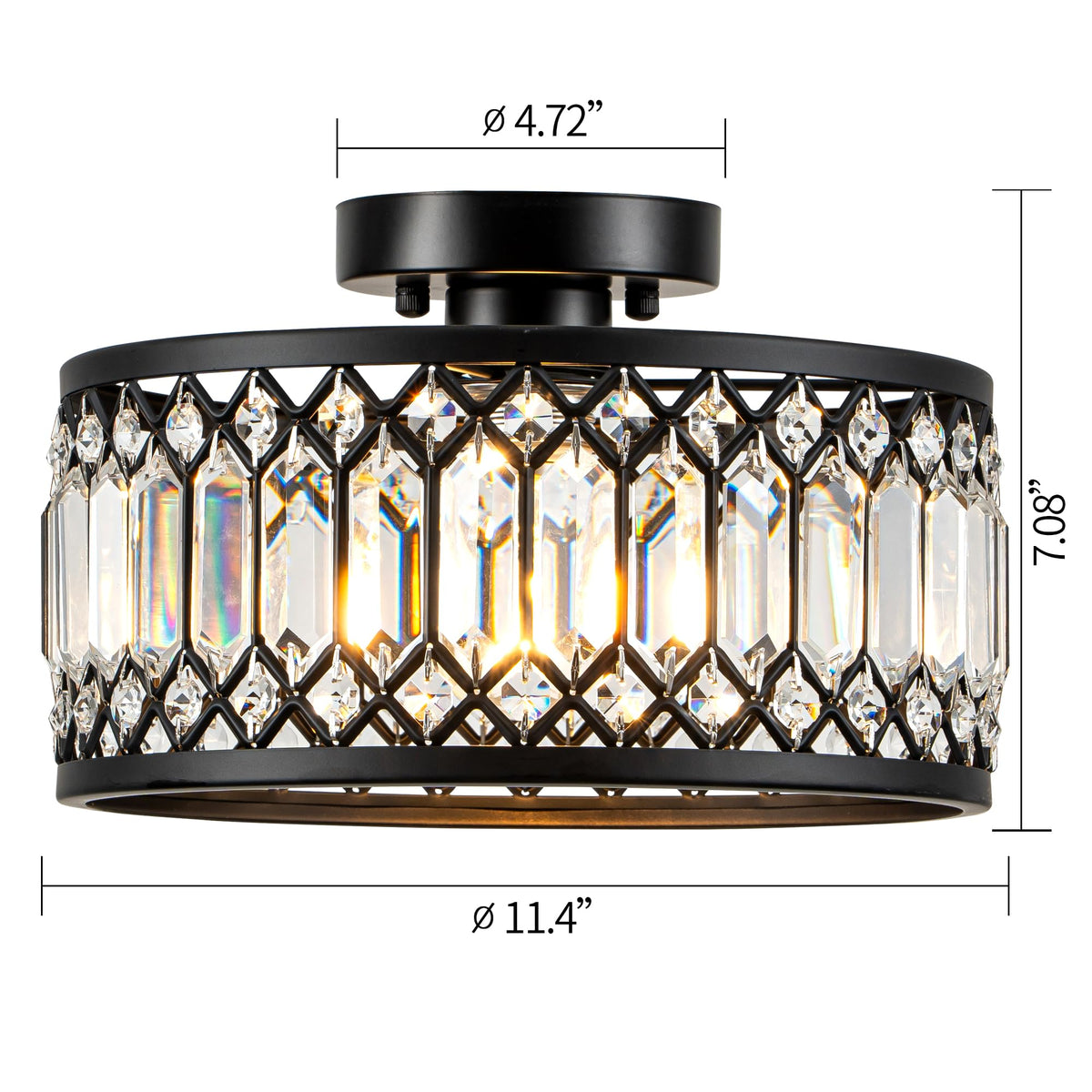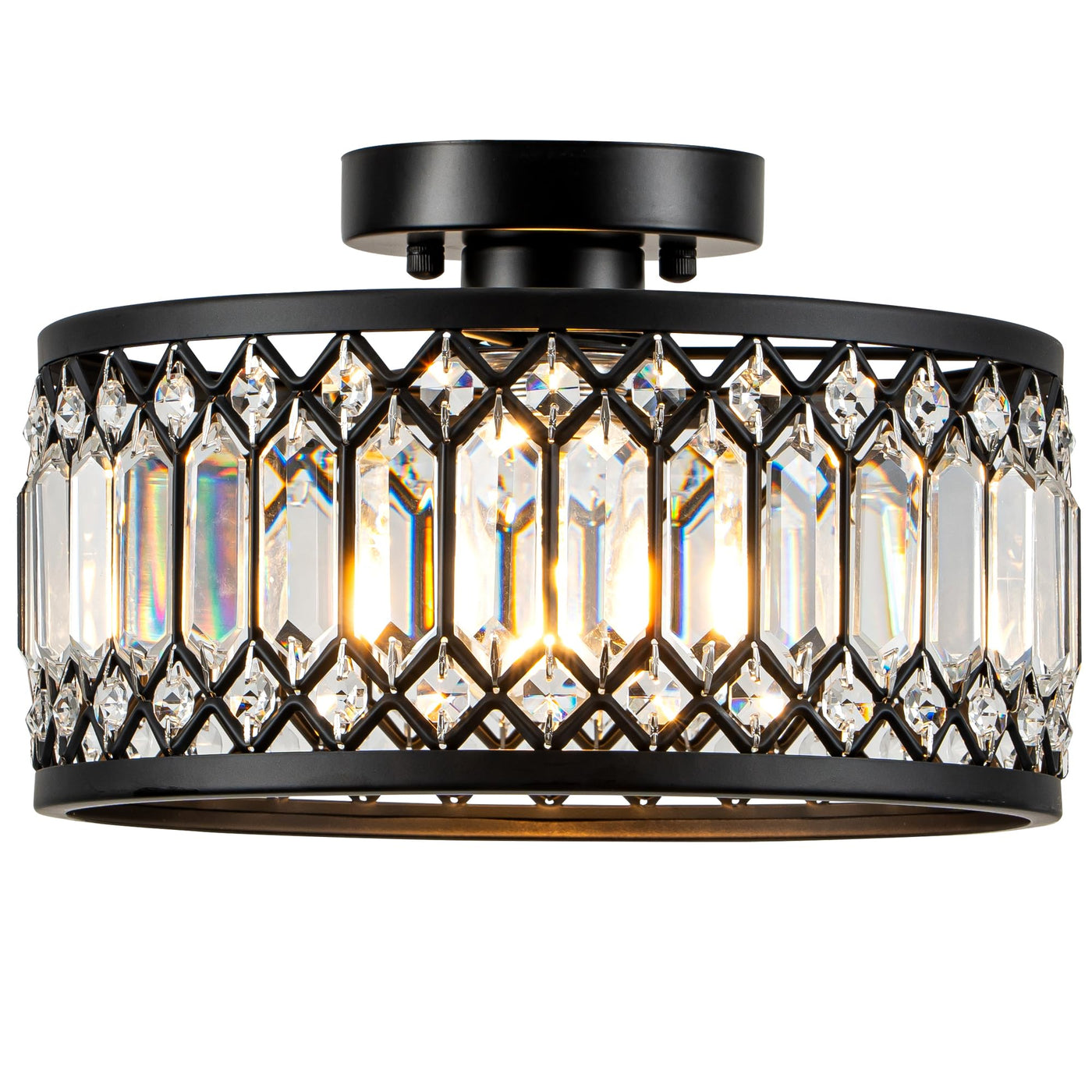 Zlepmlla Crystal Black Ceiling Light, Modern Semi Flush Mount Ceiling Light Fixture, Round Small Chandelier For Hallway Entryway