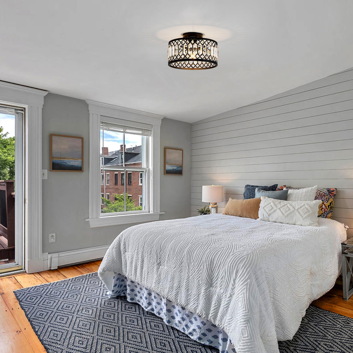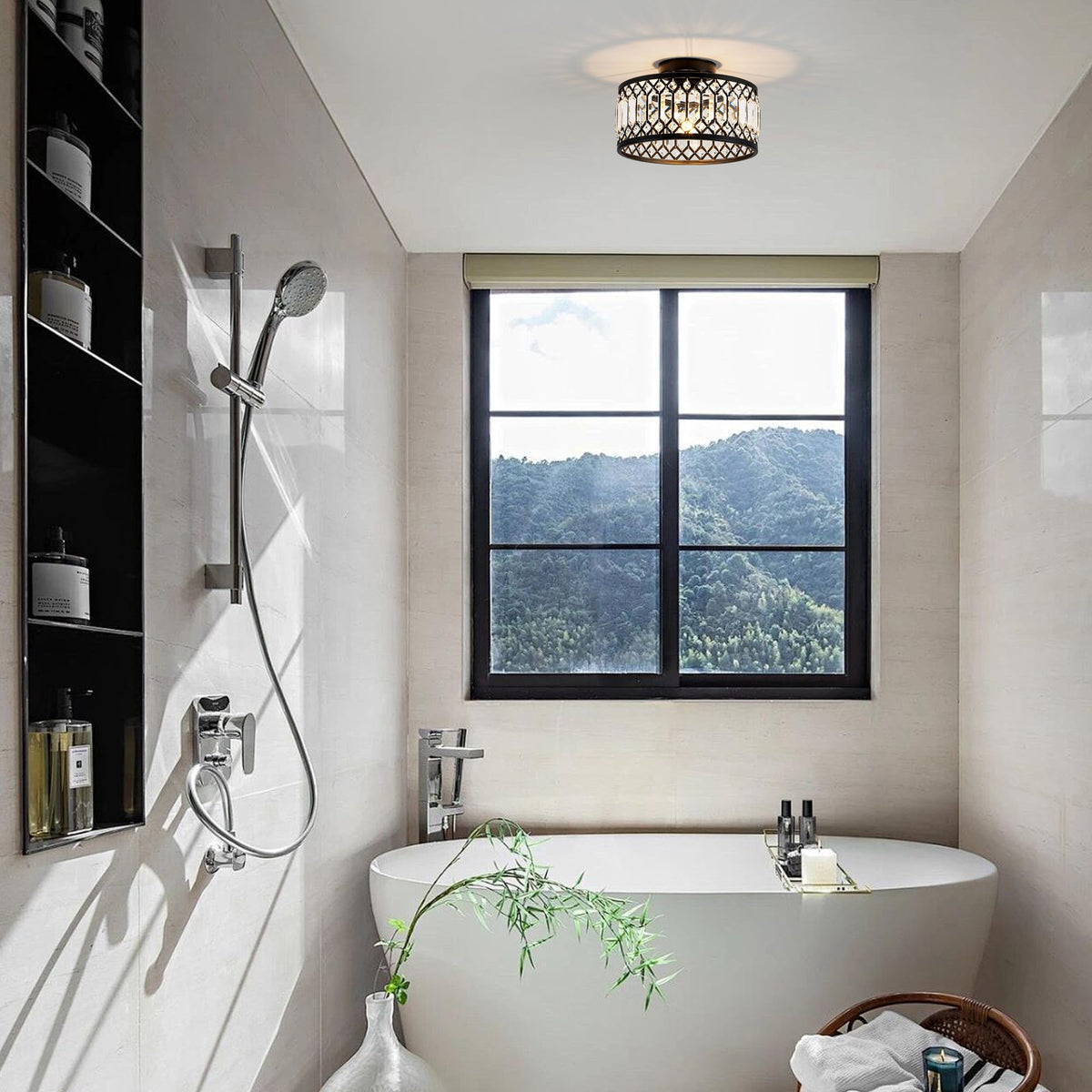 Crystal Black Ceiling Light, Modern Semi Flush Mount Ceiling Light Fixture, Round Small Chandelier For Hallway Entryway Bathroom Bedroom Laundry Room, 1-Light, 11.4 Inch