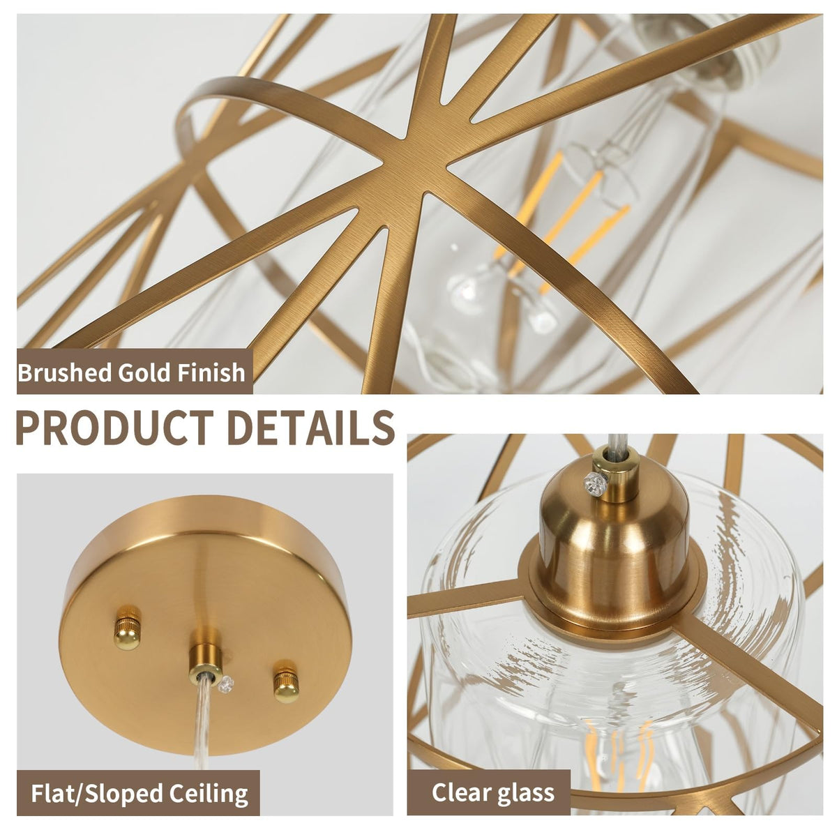 Zlierop Brushed Gold Pendant Light, Modern Kitchen Pendant Lighting Over Island, Pendant Lighting With Clear Glass Shade, Glass