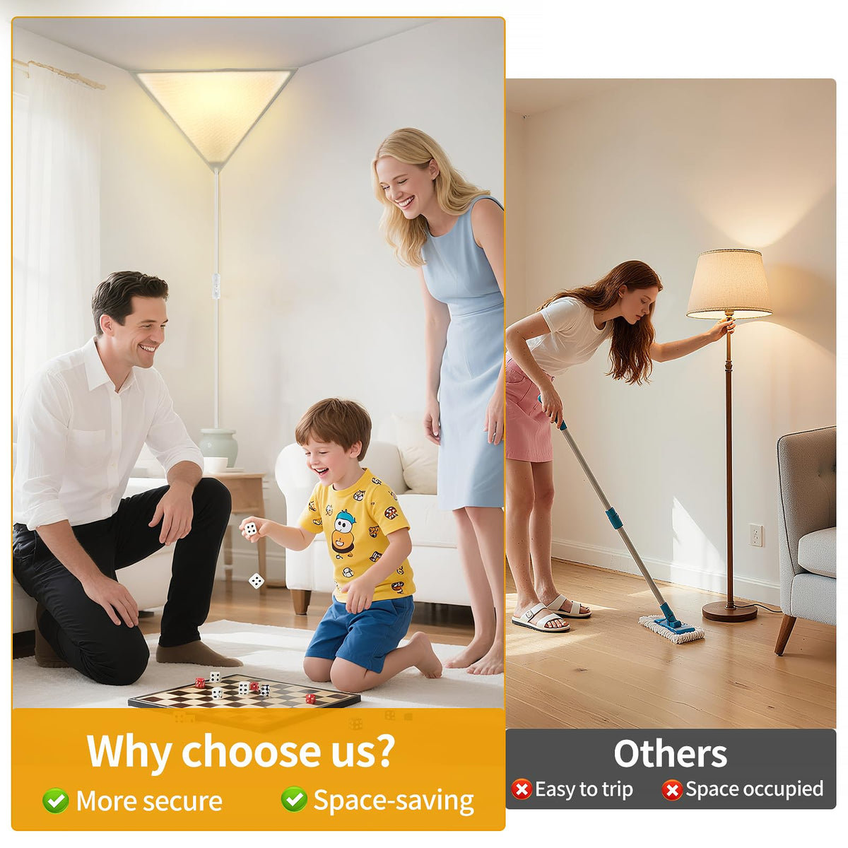 Space-saving triangle shape, ideal for illuminating corners without cluttering floor space.