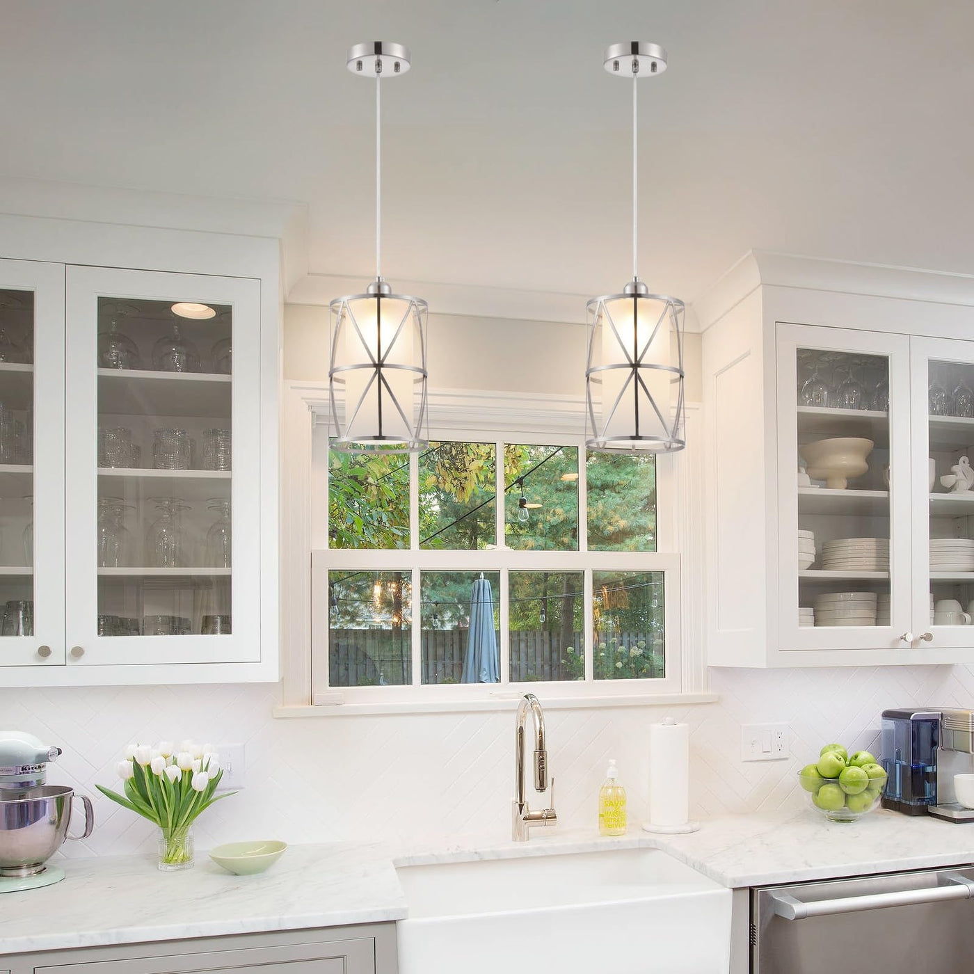 Zlierop Modern Pendant Light With Frosted Glass, Brushed Nickel Hanging Kitchen Lights, Cylindrical Pendant Lights Kitchen Island, Kitchen Pendant Lighting Over Island, Foyer, Dining Room, Entryway