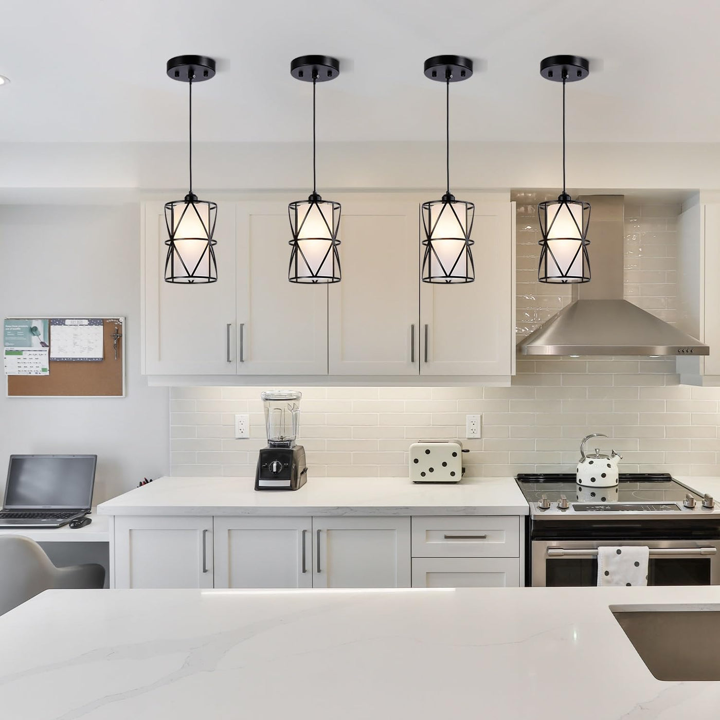 Zlierop Pendant Lights - Matte Black Kitchen Island Lights, Modern Cylindrical Pendant Light Fixtures With Frosted Glass, Small