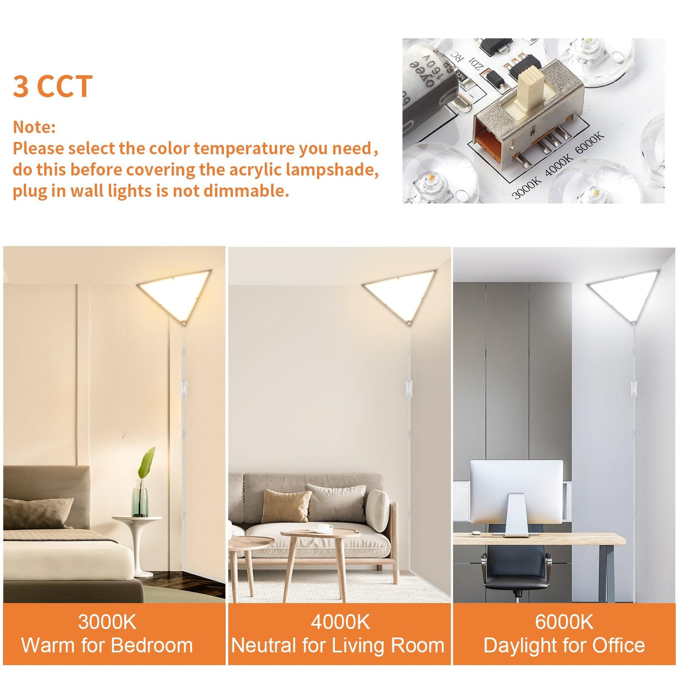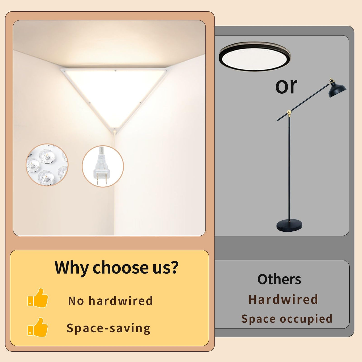 Zlierop Upgraded Corner Lights For Living Room, 22W 2200Lm Led Corner Light, Corner Light With 10 Ft Cord, 3000 4000 6000K Plug
