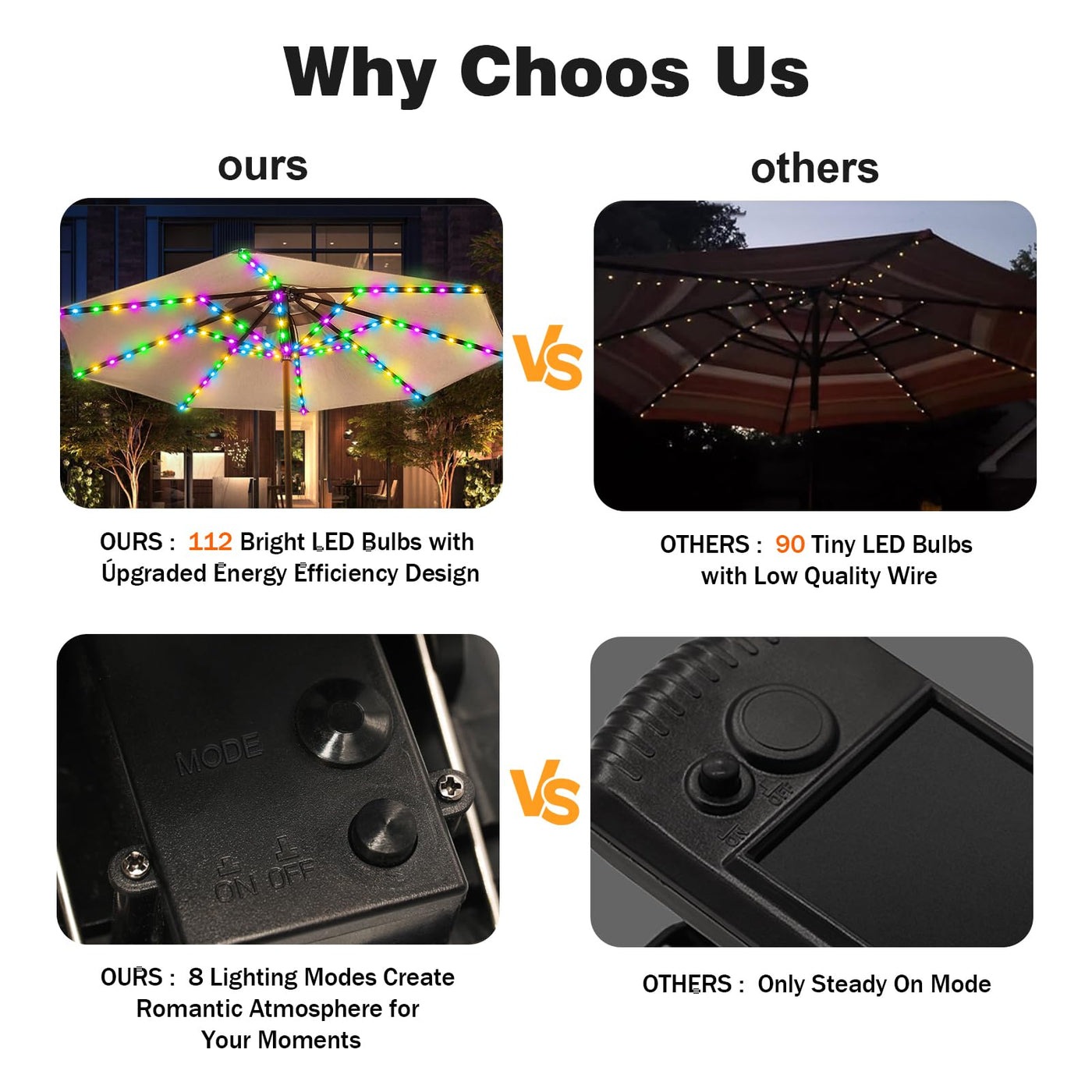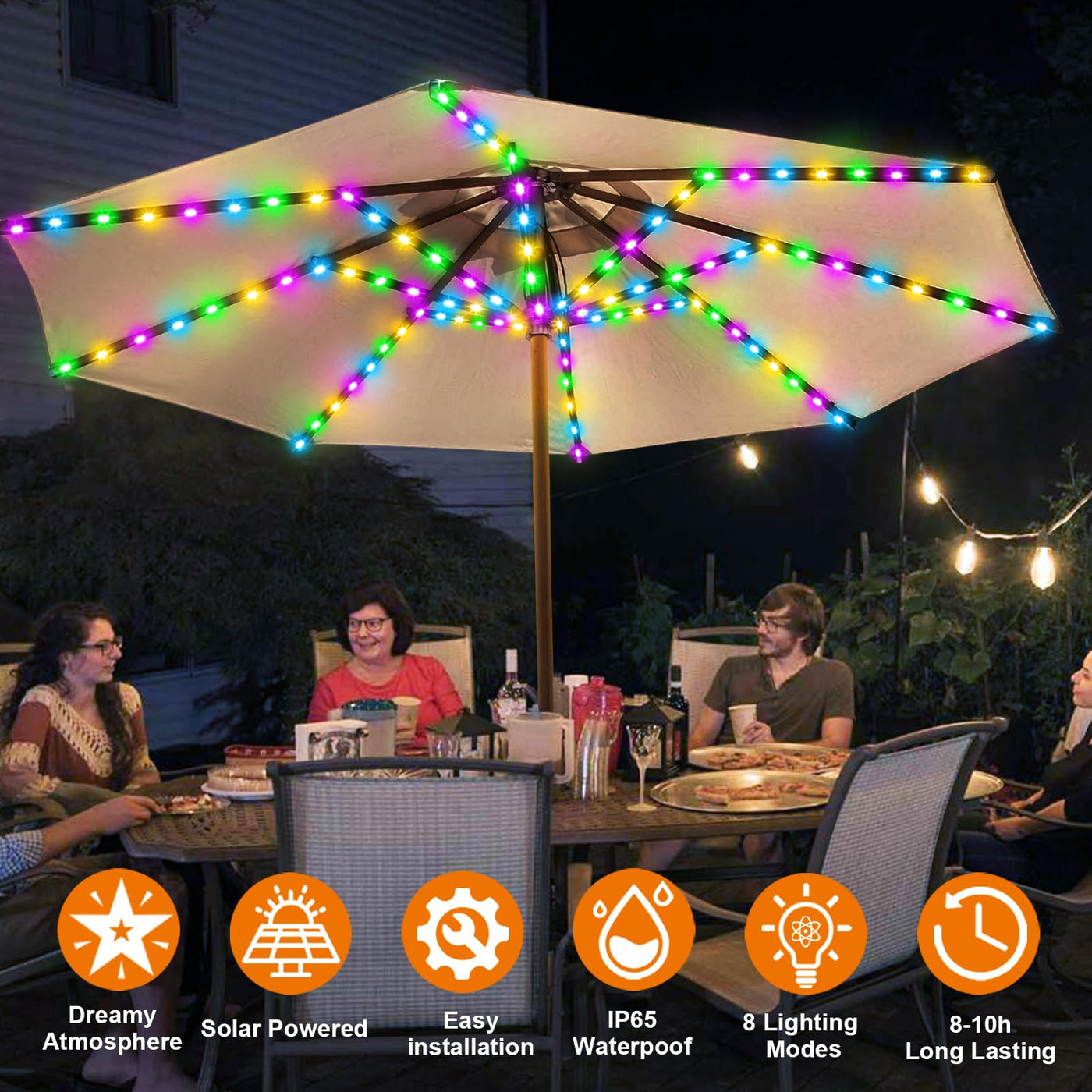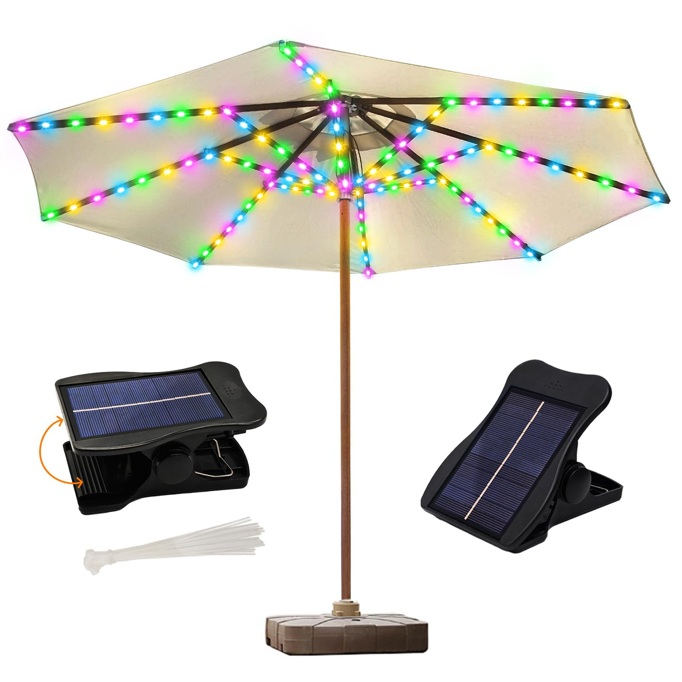 ZNYCYE Solar Umbrella Lights, 8 Strands Patio Umbrella Lights Outdoor with 8 Modes 3V Solar Panel Clip 112 Led Outdoor Waterproo