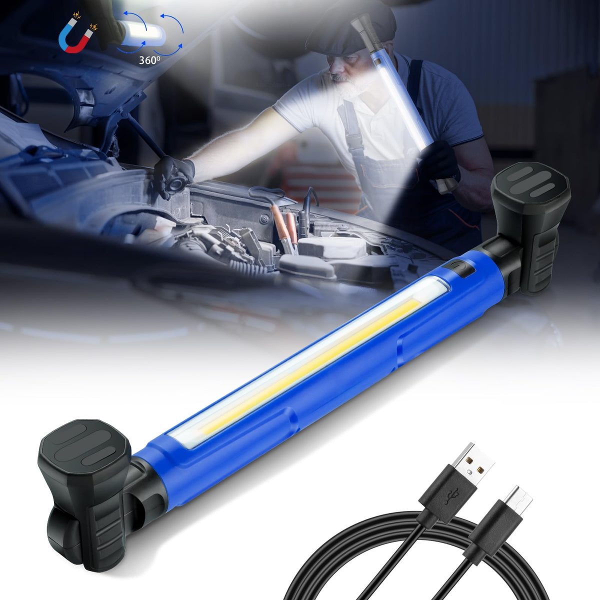Zoeyltg Led Work Light, 3000Lm 5200Mah Rechargeable Magnetic Underhood Ip54 Waterproof Cordless Work Light Bar With Hooks & Usb