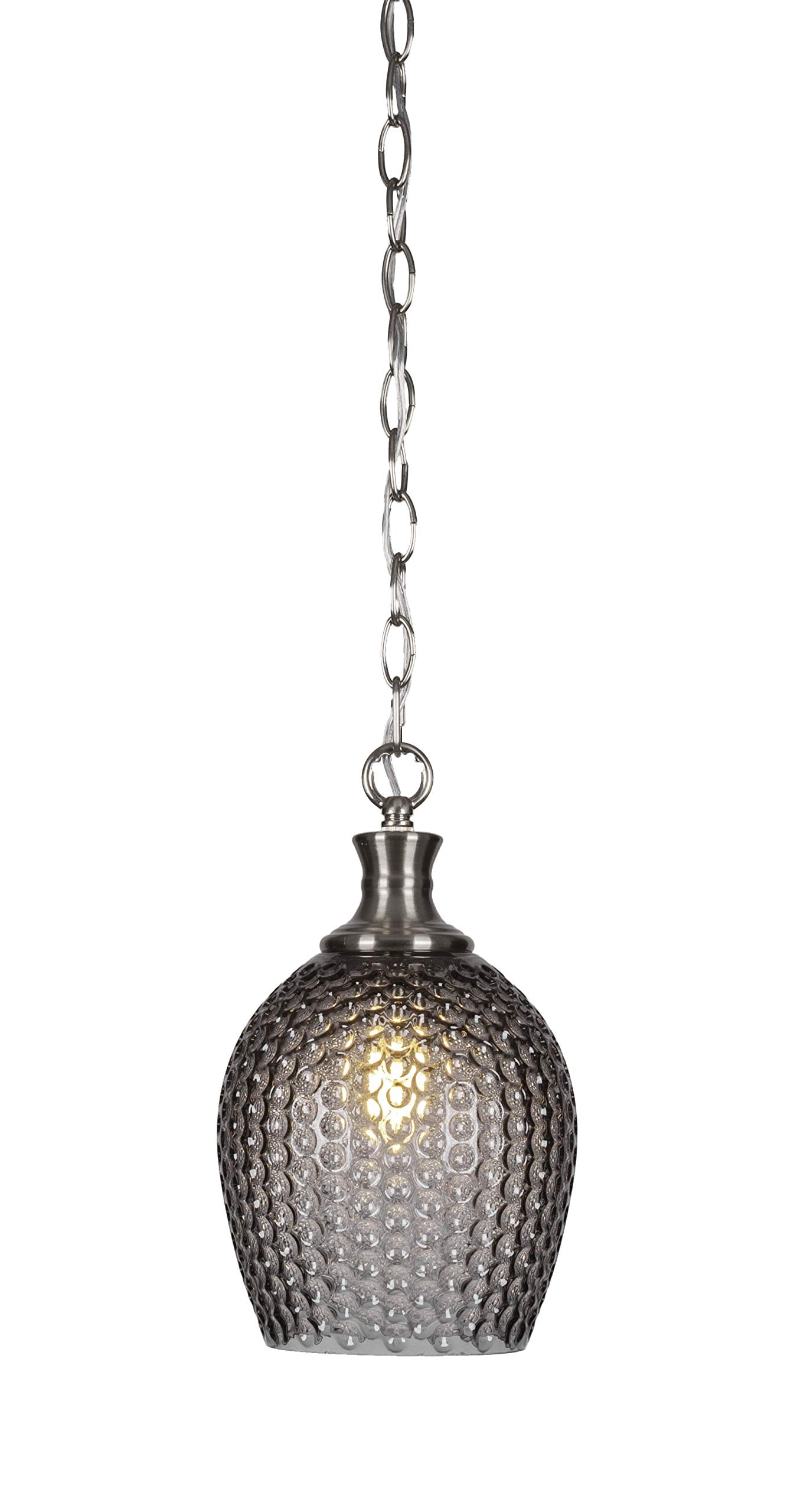 96-BN-4902 Zola Chain Hung Pendant In Brushed Nickel Finish With 7.5" Smoke Textured Glass. Rated for: Dry location. Light Bulb Data: 1 E26 60 watt. Bulb included: No.
