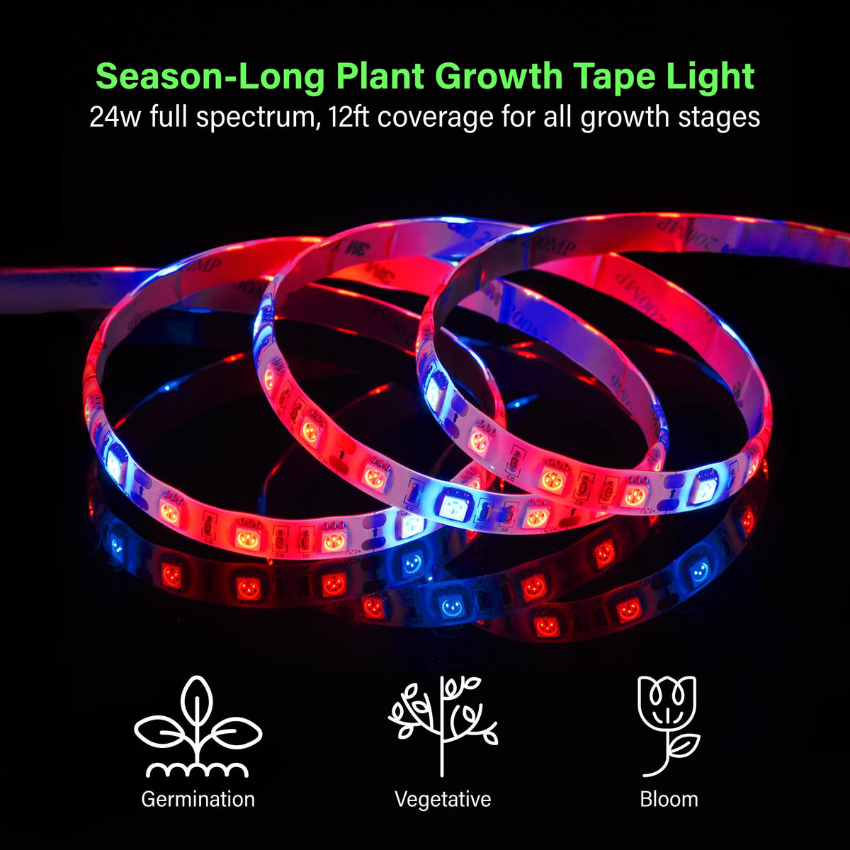 Zone Industry Corp. Led Grow Light Tape, 11.8 Feet / 360 Cm Plant Growing Light Strip Kit For Indoor Gardening, Full Spectrum, 24 Watt, Water Resistant, Plug-In Design