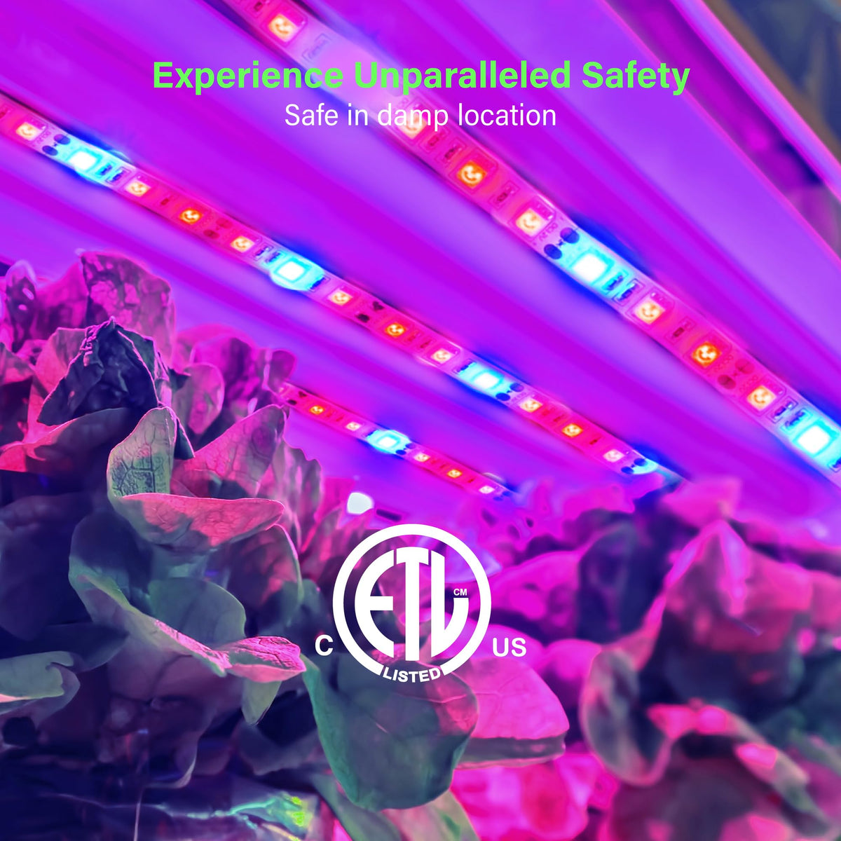 Q: Is the ZONE INDUSTRY CORP. LED Grow Light Tape safe for damp locations?A: Yes, this grow light is ETL-rated for damp location installation, making it safe for use in moisture-prone environments. This feature ensures reliable performance, allowing you to use it in greenhouses or other indoor gardening setups without concern.