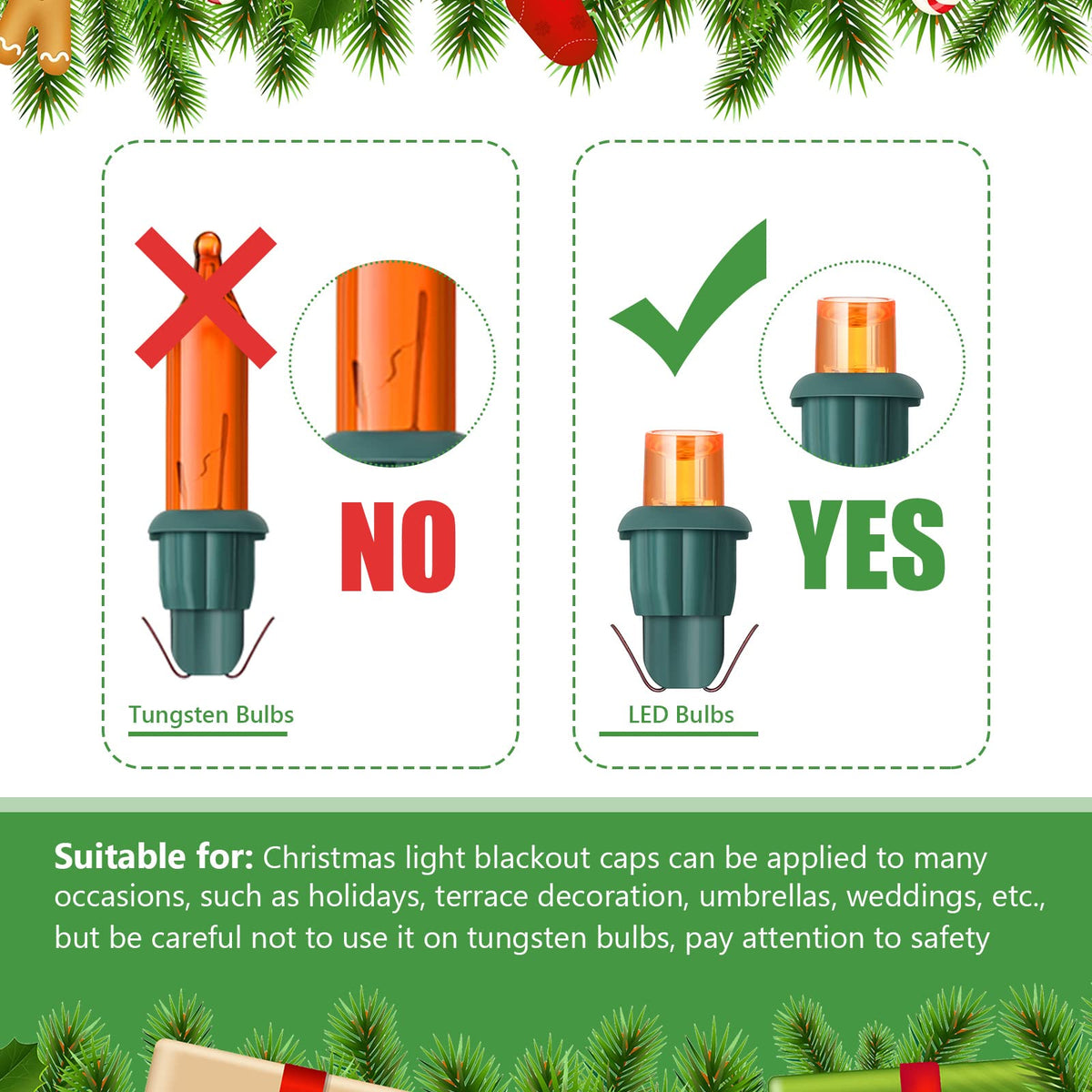Q: How many blackout caps are included in the package?A: The package includes 100 pieces of no glow caps, providing ample quantity for your holiday lighting needs and allowing multiple uses across various decorations.