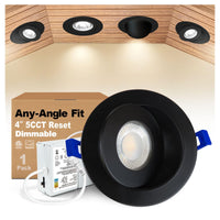 Zouzai 1 Pack 4 Inch Black 5Cct Led Gimbal Led Recessed Light With Junction Box, 360+90 Adjustable Directional Eyeball Lighting,