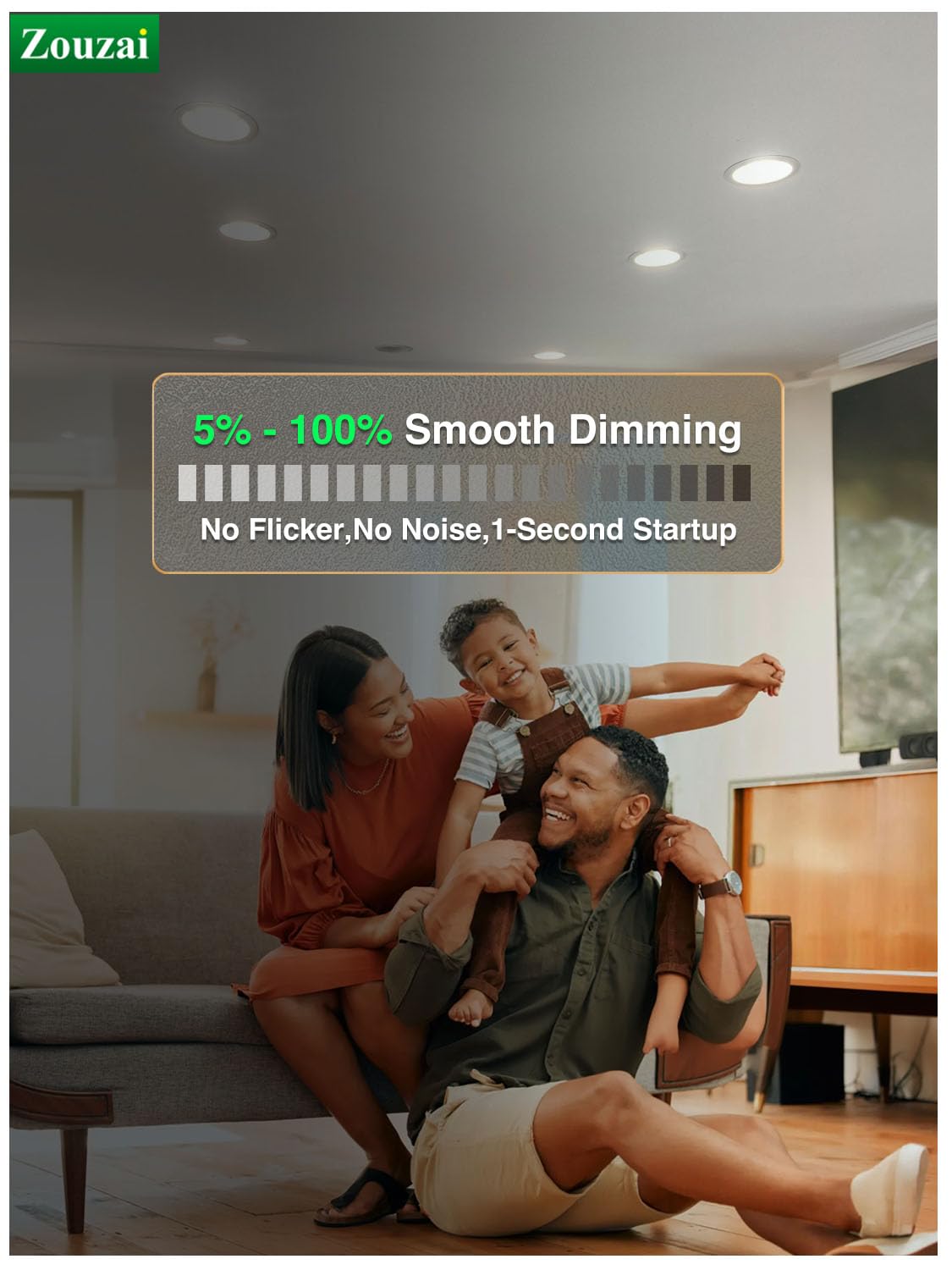 Q: Is the zouzai recessed light energy-efficient?A: Yes, the zouzai 6 Inch Ultra-Thin LED Recessed Light is Energy Star certified, ensuring that it is energy-efficient while providing high-quality illumination.