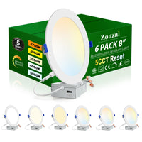 Zouzai 6 Pack 8 Inch 5Cct Ultra-Thin Led Recessed Ceiling Light With Junction Box, 2700K/3000K/3500K/4000K/5000K Selectable,18W Dimmable, Led Can Lights - Etl And Energy Star Certified