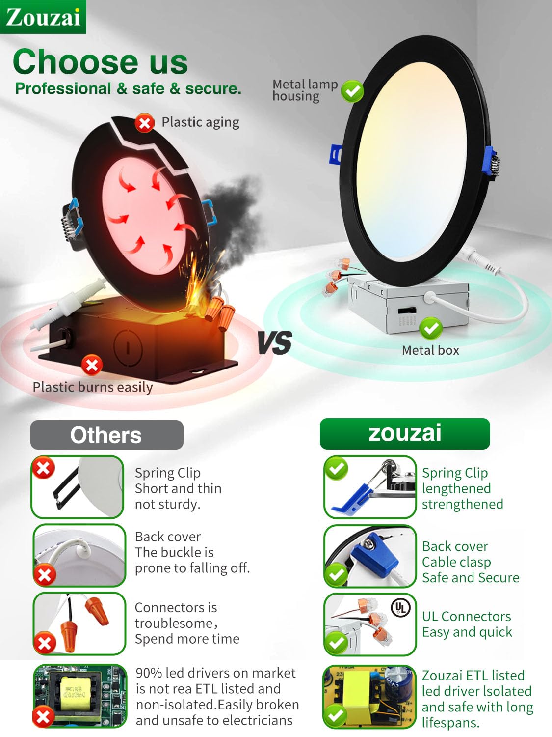 Q: Are these lights compatible with dimmer switches?A: Yes, the zouzai ultra-thin LED recessed lights are compatible with most dimmer switches, allowing for 5%-100% smooth dimming to suit your lighting preferences and create the perfect ambiance in any room.