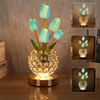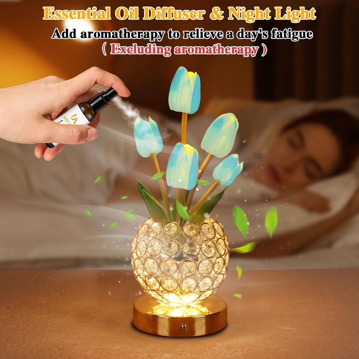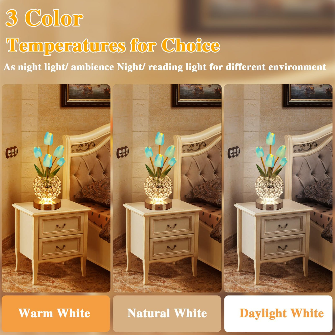 Zqpbled Birthday Gifts For Women/Mom Table Lamp, 3 Color Crystal Flower Bedside Lamps Infinitely Dimming With Usb Charge Small N