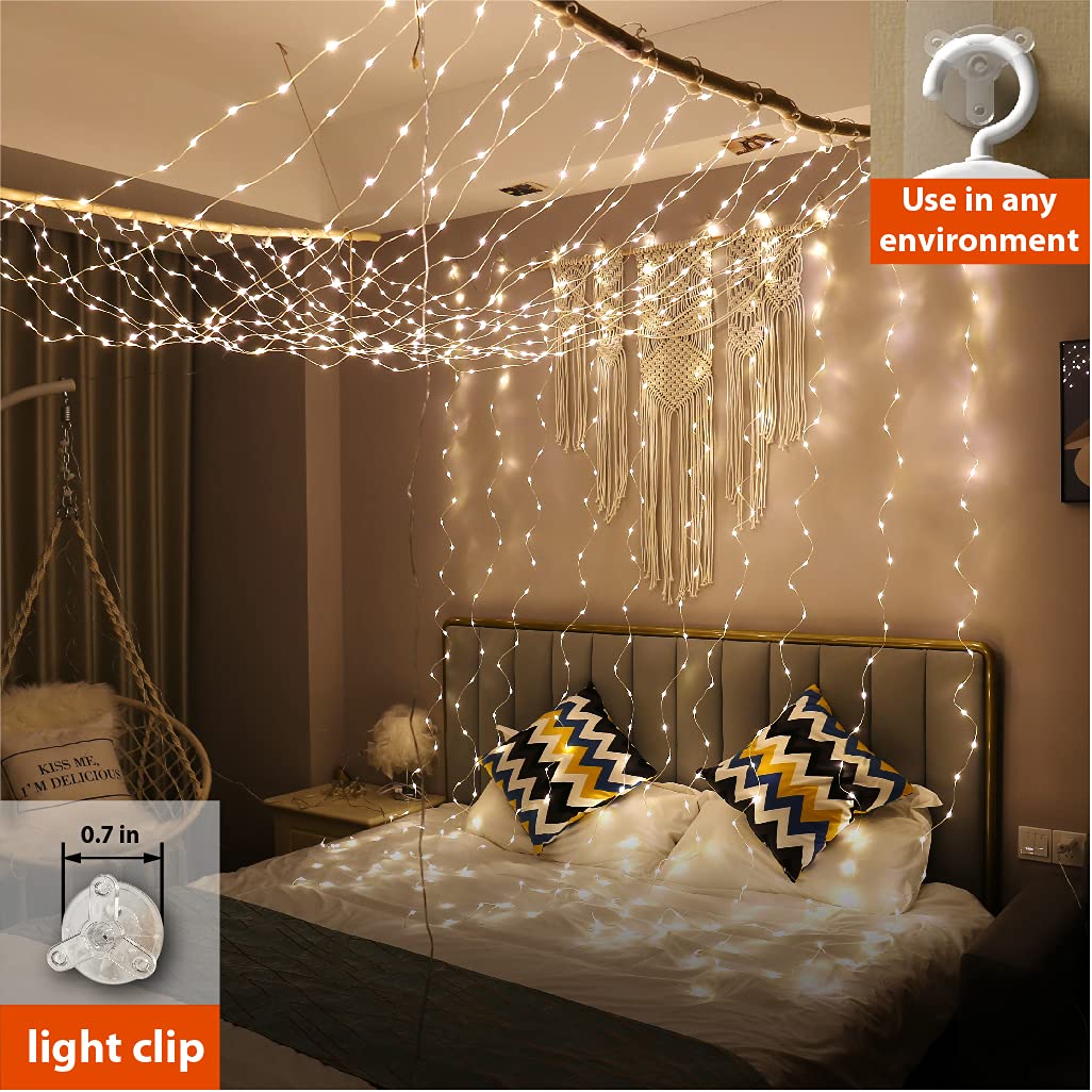 ZSJWL 6.5 9.8ft Curtain String Lights, USB Plug Fairy Lights Remote Dimmable Control, 8 Flashing Modes Waterproof Lights for Wi