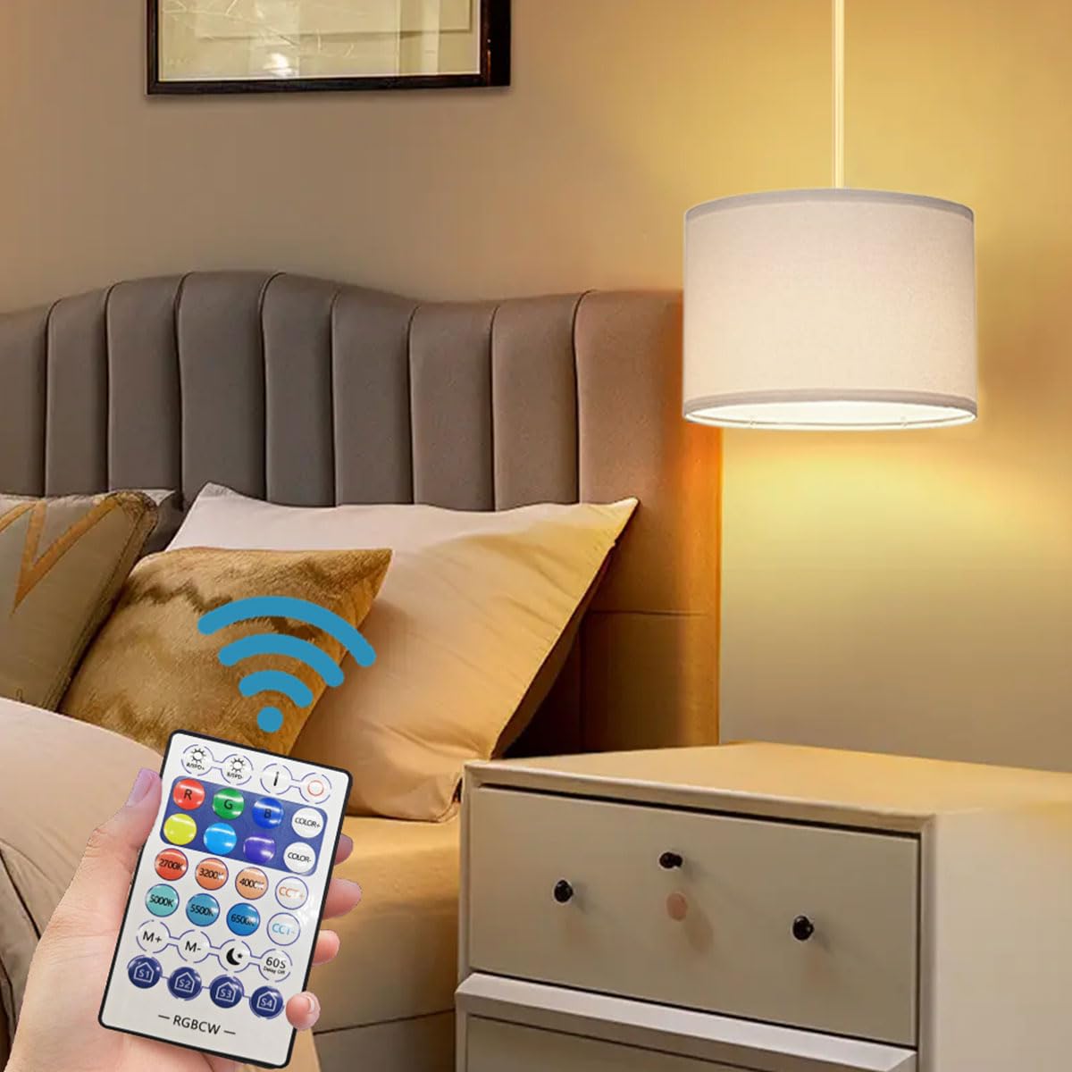 Q: What type of light bulb does the ZSLAIFU pendant light use?A: The ZSLAIFU pendant light comes with a 9W RGBCCT smart bulb that can adjust to 16 million colors and a range of warm to cold white light (2500K-6500K), allowing you to create various lighting effects for any occasion.