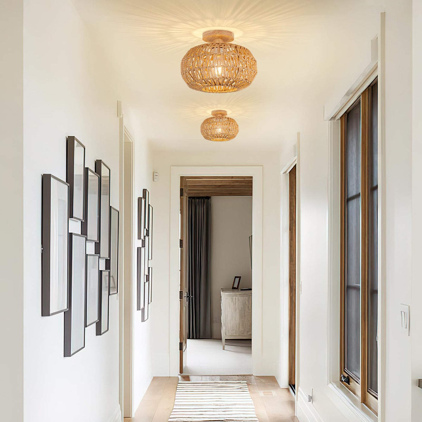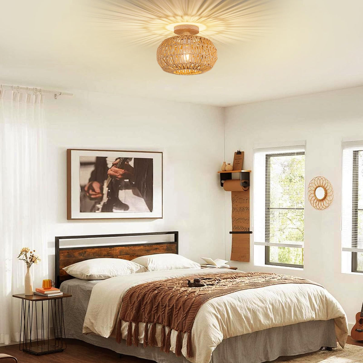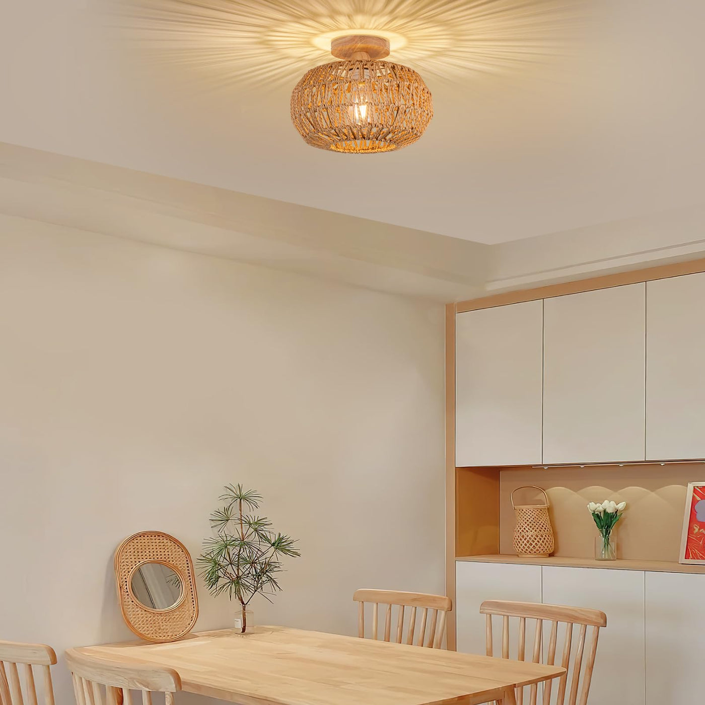 Zswanbei Boho Light Fixtures Ceiling Mount Boho Rattan Ceiling Light Flush Mount Mini Chandelier Woven Ceiling Light Fixture For