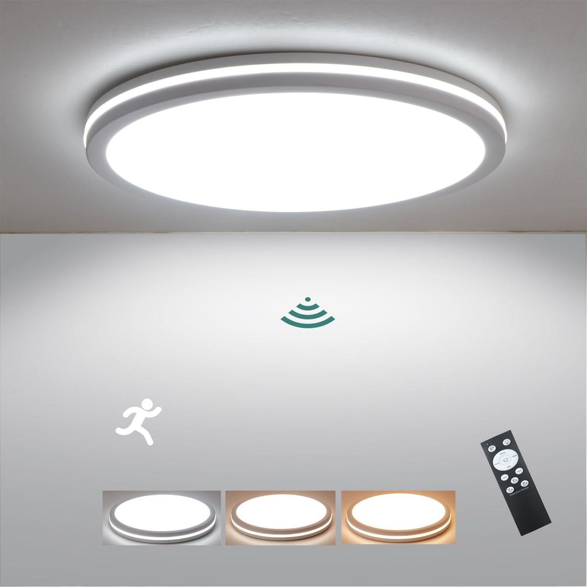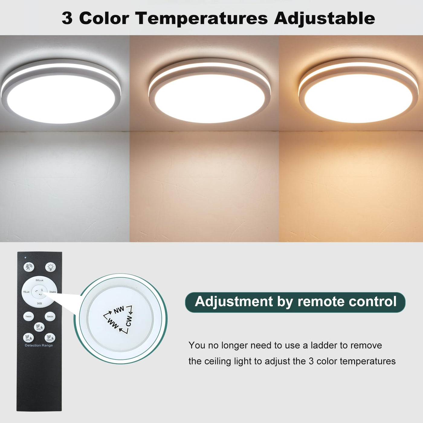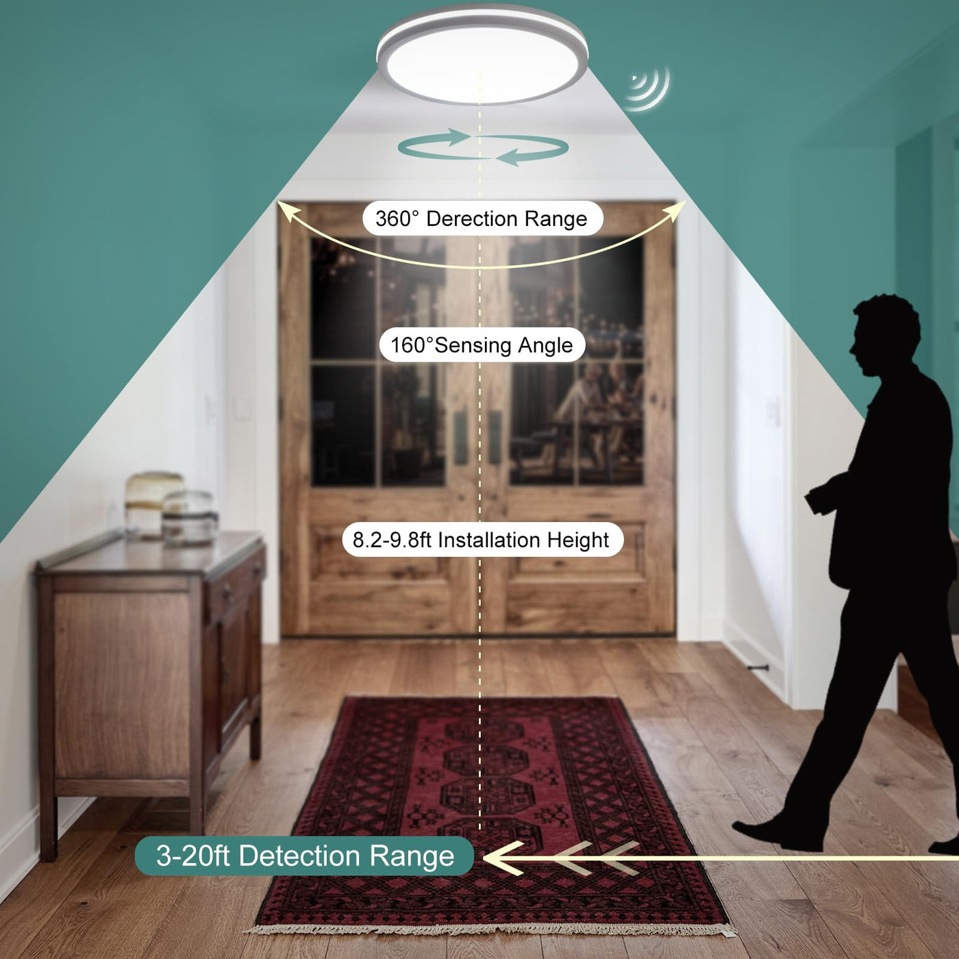 Zsyubo 11 Inch Motion Sensor Ceiling Light Indoor, 24W Flush Mount Ceiling Light Fixture 3000K/4000K/6000K, Motion Sensor Lamp W