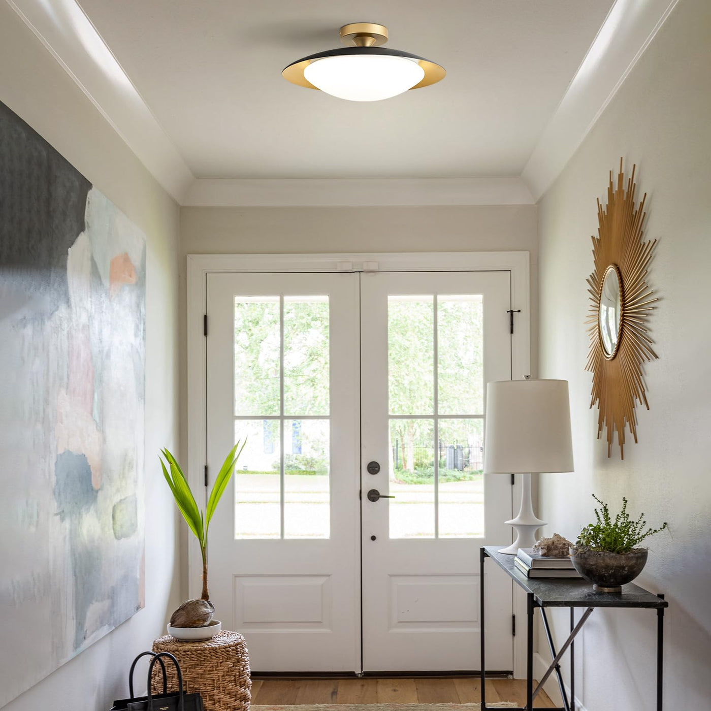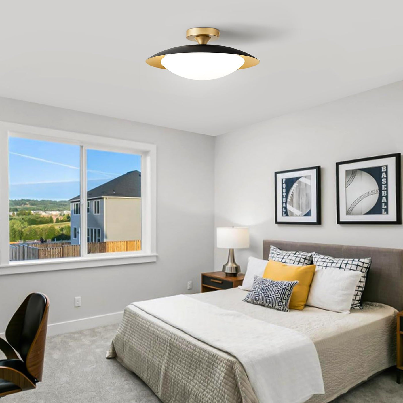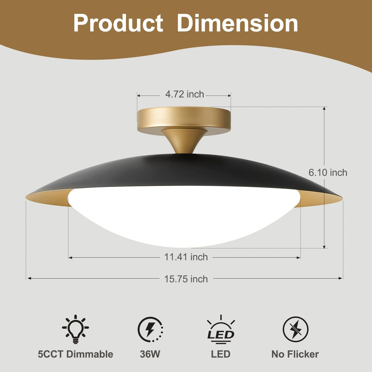 Zuyurt Dimmable Mid Century Modern Ceiling Light 5Cct Led Black And Gold Semi Flush Mount Ceiling Lighting For Kitchen Bedroom Hallway Bathroom 2700K-6000K 15.75 In
