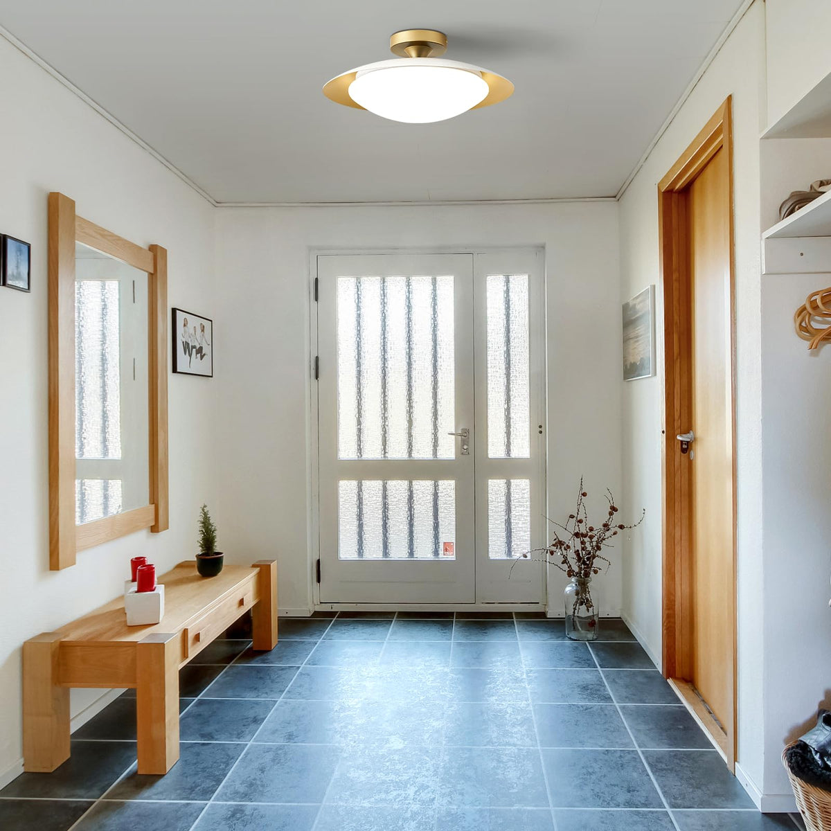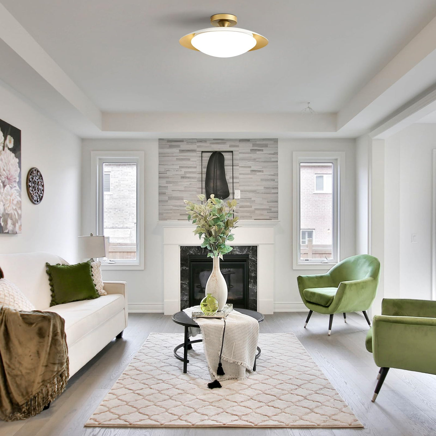 Zuyurt Dimmable Mid Century Modern Ceiling Light 5Cct Led White And Gold Semi Flush Mount Ceiling Lighting For Kitchen Bedroom Hallway Bathroom 2700K-6000K 15.75 In