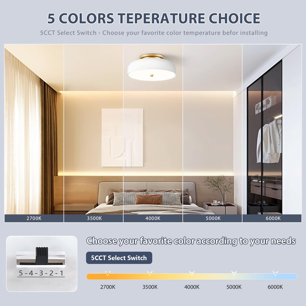 Zuyurt Dimmable Modern Led Ceiling Light,Mid-Century White And Gold Semi Flush Mount Ceiling Light, With Acrylic Shade, 5Cct 270