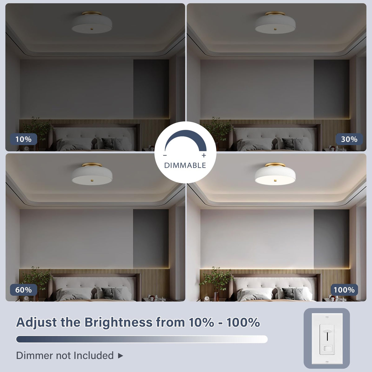 Q: Can I adjust the brightness and color temperature of this ceiling light?A: Yes, this ceiling light offers five color temperature options ranging from warm 2700K to cool 6000K, allowing you to adjust the brightness and tone of your space according to your preference. Please note that a dimmer switch is not included.