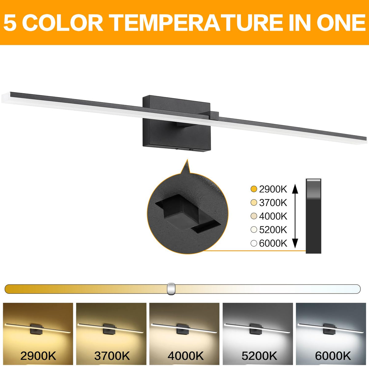 Zuzito 40In Bathroom Light Fixtures Black, Modern Led Vanity Lights Bar For Bathroom 5Cct Dimmable, 28W Lighting Fixtures For Ba
