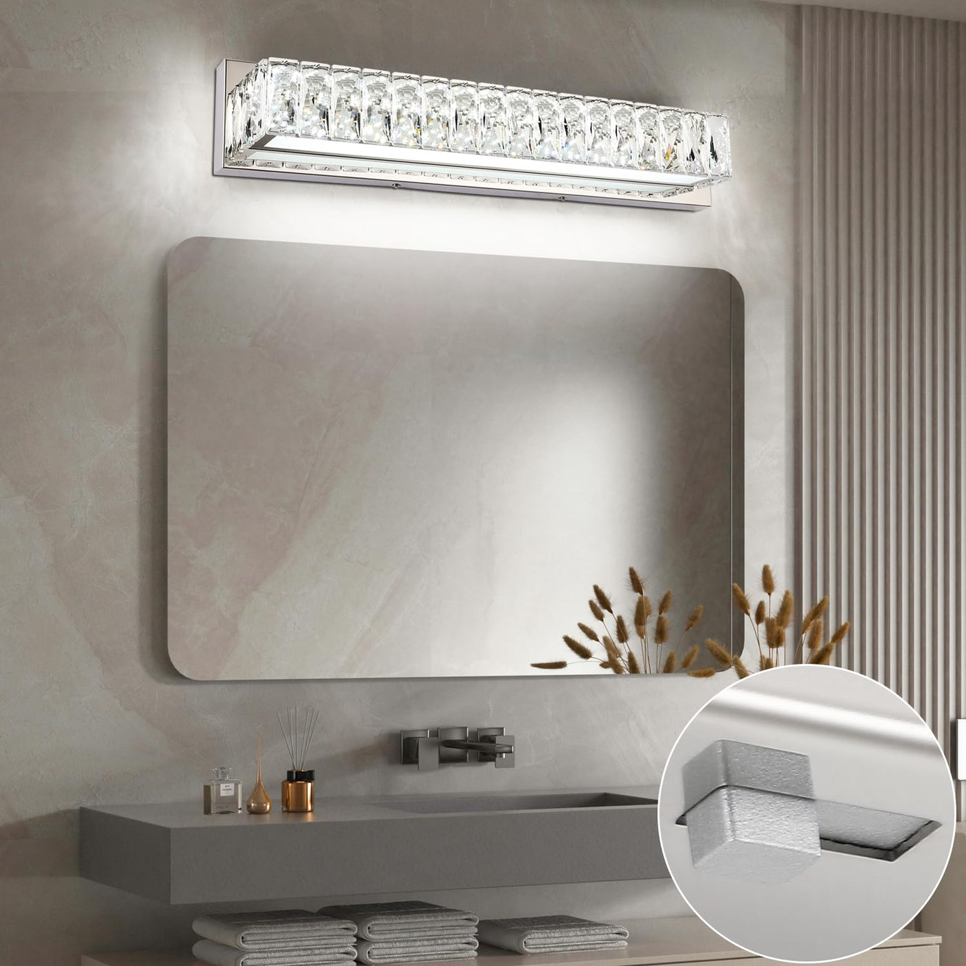 ZUZITO Crystal Vanity Lights for Bathroom 18W LED Bathroom Light Bar Modern Chrome Lighting Fixtures over Mirror for Bath 22.8 inch