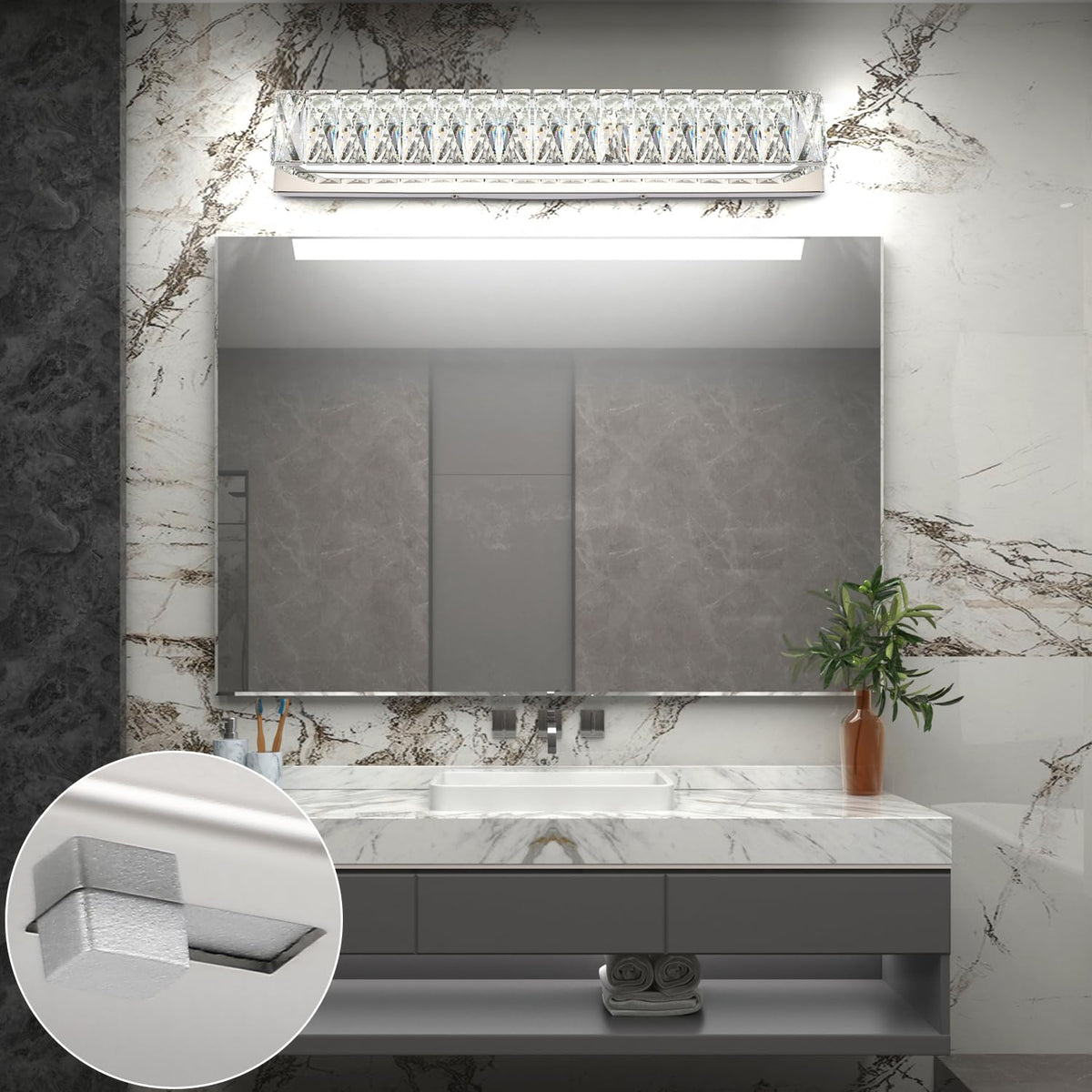 Zuzito Crystal Vanity Lights For Bathroom 18W Led Bathroom Light Bar Modern Chrome Lighting Fixtures Over Mirror For Bath 22.8 I