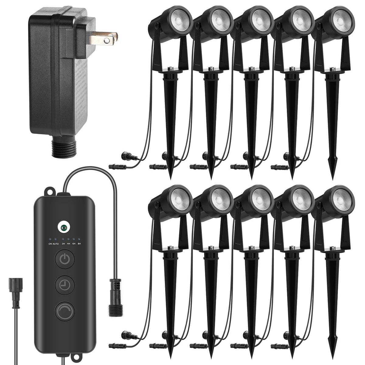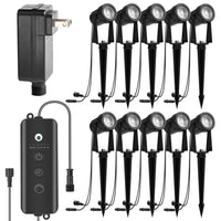 Zyan 10 Pack Outdoor Led Landscape Spotlights With Sensor, Dimmable With Timer, Dusk To Dawn, Ip65 Waterproof & Connectable