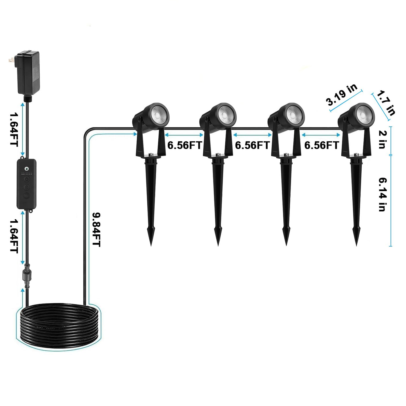 Zyan 4 Pack Outdoor Led Landscape Spotlights With Sensor, Dimmable With Timer, Dusk To Dawn, Ip65 Waterproof & Connectable