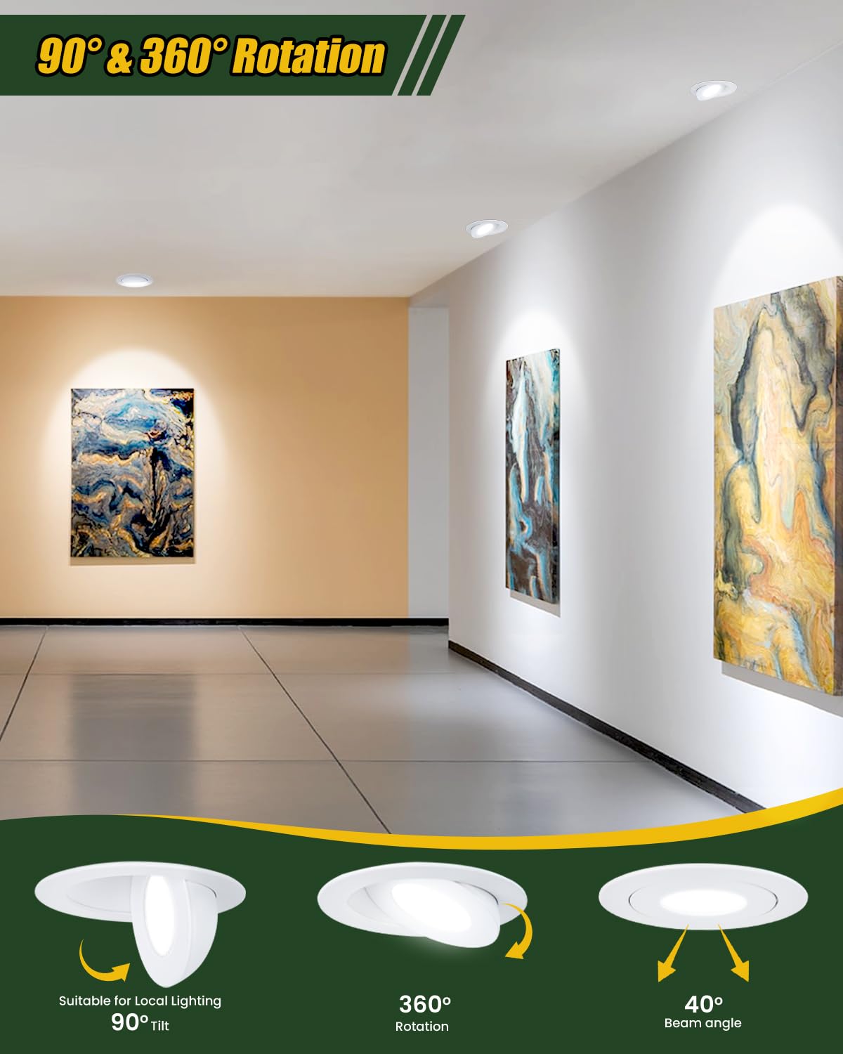 Zyc Gimbal Led Recessed Lighting - 4 Inch 5Cct 9W 360 Rotation Adjustable Eyeball Light Led Swivel Spotlight Directional Sloped Ceiling Light Dimmable Canless Wafer Downlight Pack Of 6 Black.