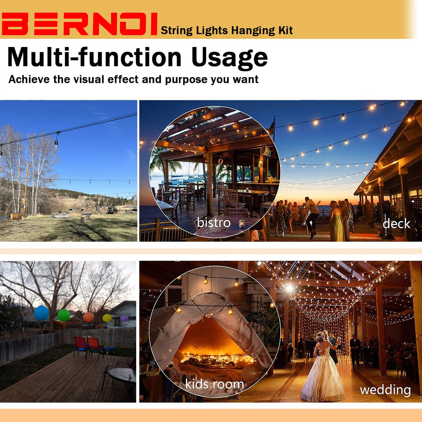Q: Can I use this suspension kit for indoor lighting as well?A: Absolutely! The zycBernoi String Light Suspension Kit is versatile and can be used for both indoor and outdoor lighting setups, making it perfect for various occasions.
