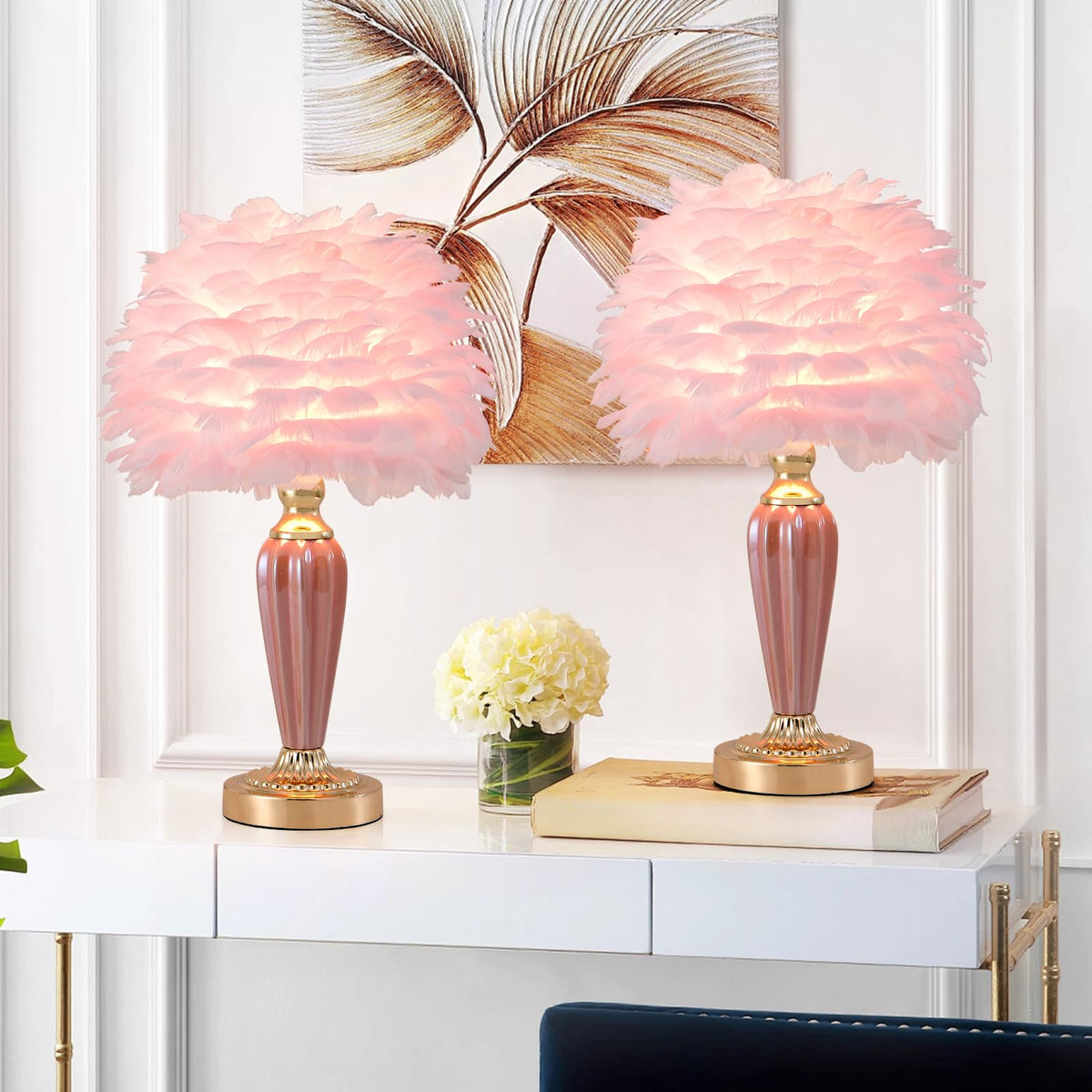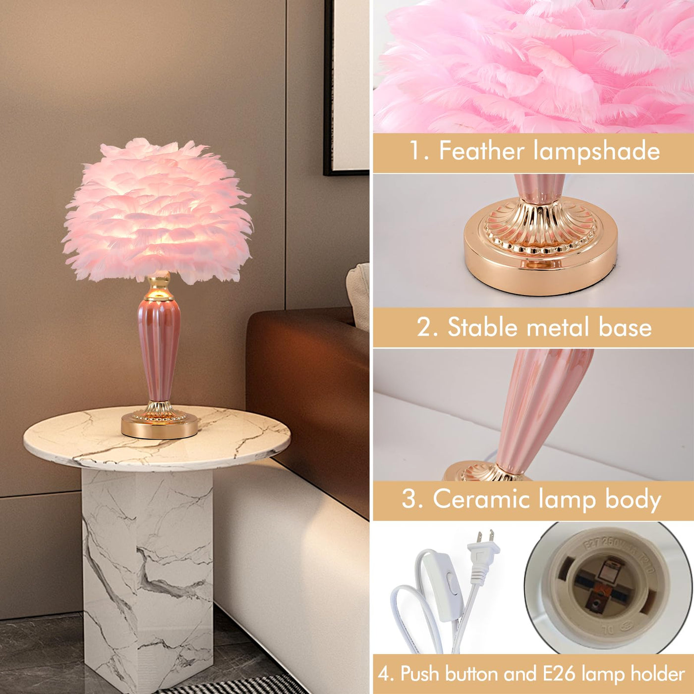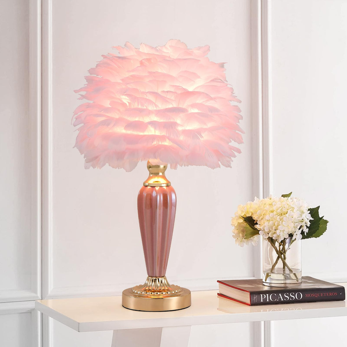 Zyleisenbao Pink Feather Lamp Creative Bedside Lamp Feather Table Lamp Cute Furry Goose Nightstand Light For Girl Bedroom Wedding Decor Living Room Hotel Office Valentines Dating Gift