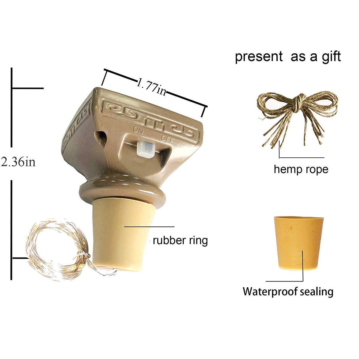 ?Solar wine bottle cork lamp (not including wine bottles): suitable for wine bottles, beer bottles and many other types of bottles, the lamp at the bottom of the bottle: 0.63 inches (about 16 mm) in diameter, and the lamp at the top of the bottle is 1.85 inches in diameter (About 47mm) 20 miniature LEDs, 6.6 feet long, suitable for indoor or outdoor decorative light strings.