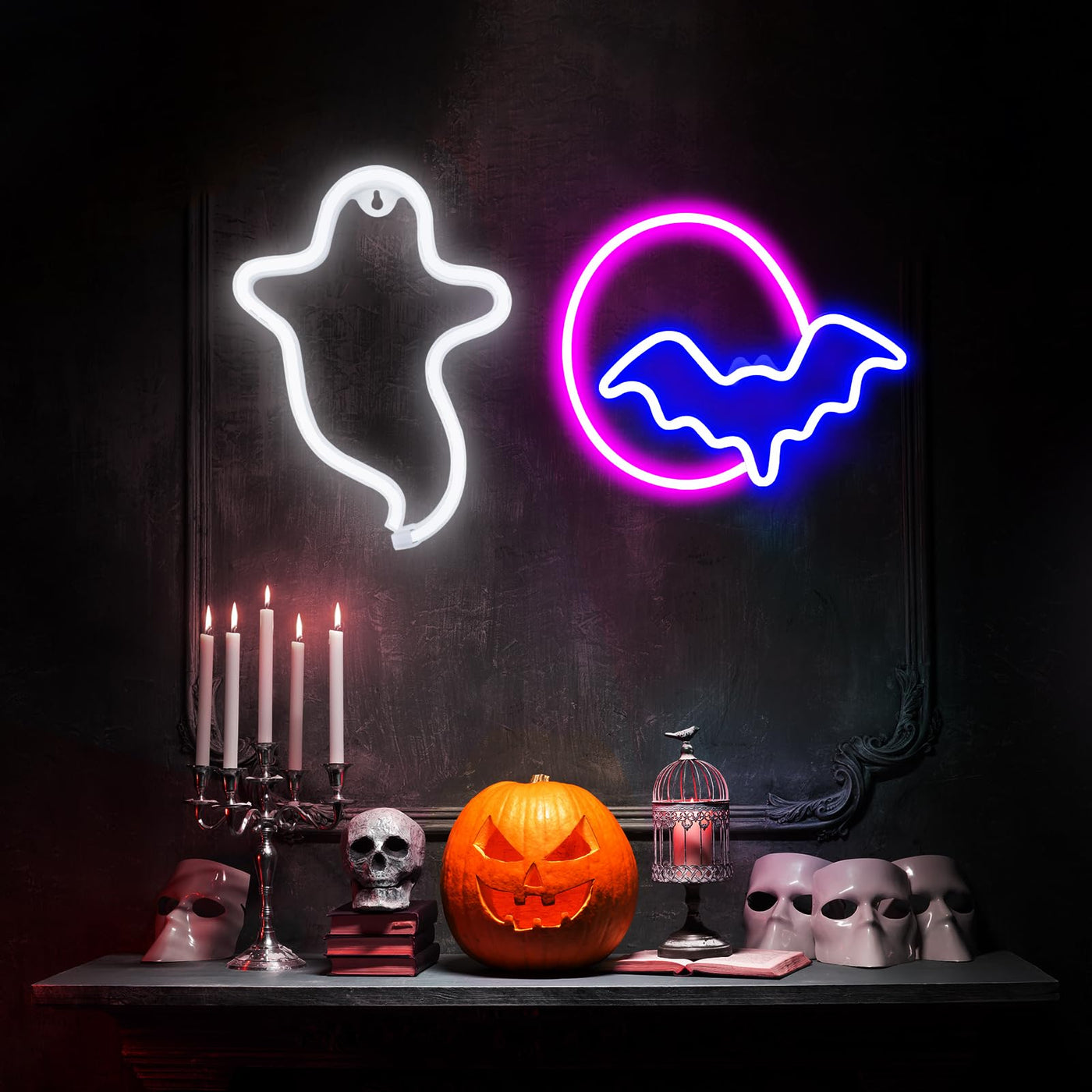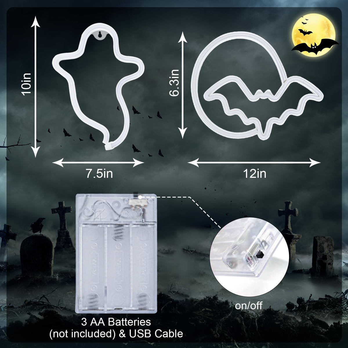 - **Complete Package**: The kit includes one Halloween bat and moon neon light and one Halloween ghost neon light, providing everything you need to kick off your Halloween festivities.