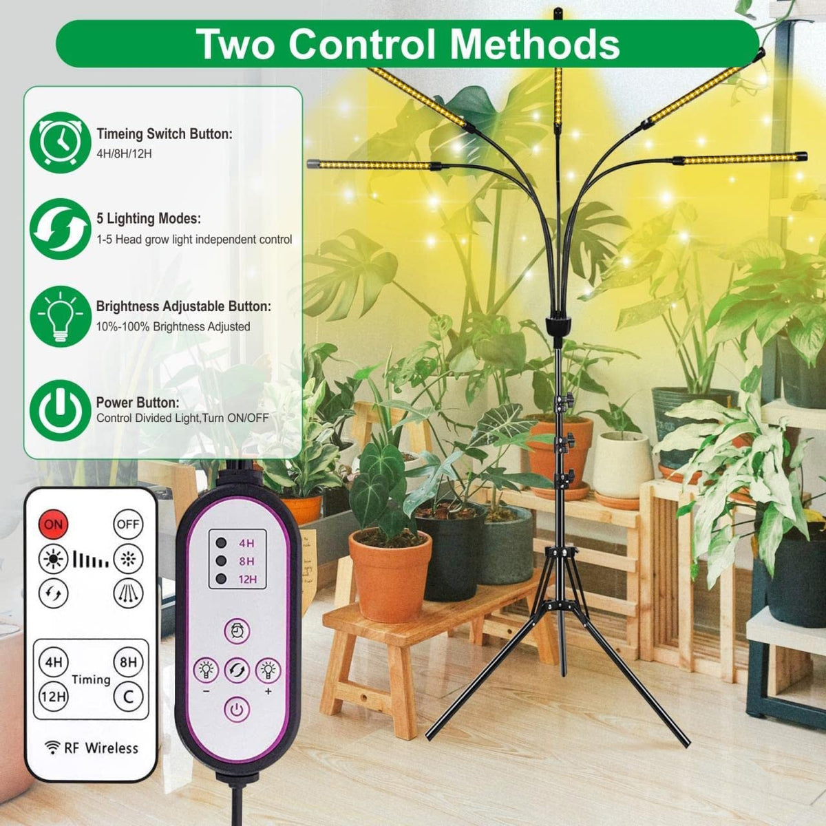Zyzykeji 5-Head Led Grow Lights For Indoor Plants, Full Spectrum With Timer, Warm White